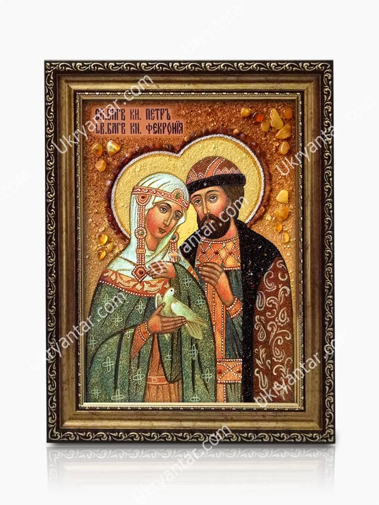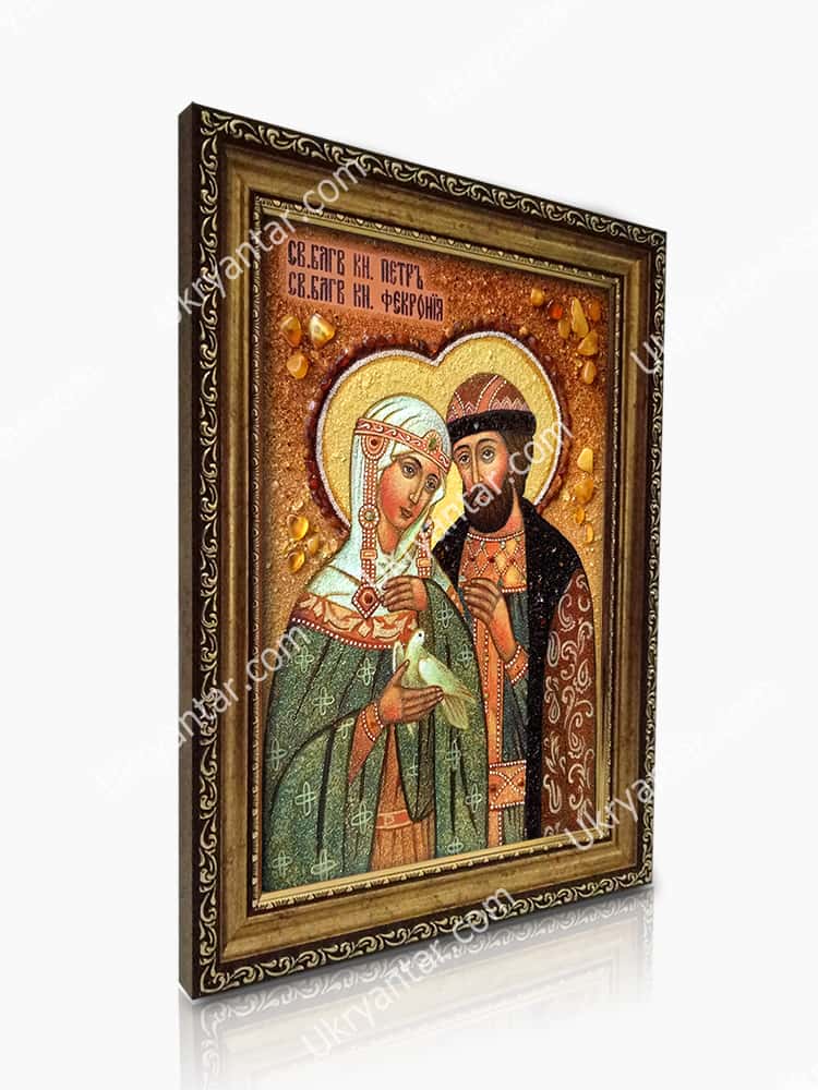 Icon of Peter and Fevronia from amber
