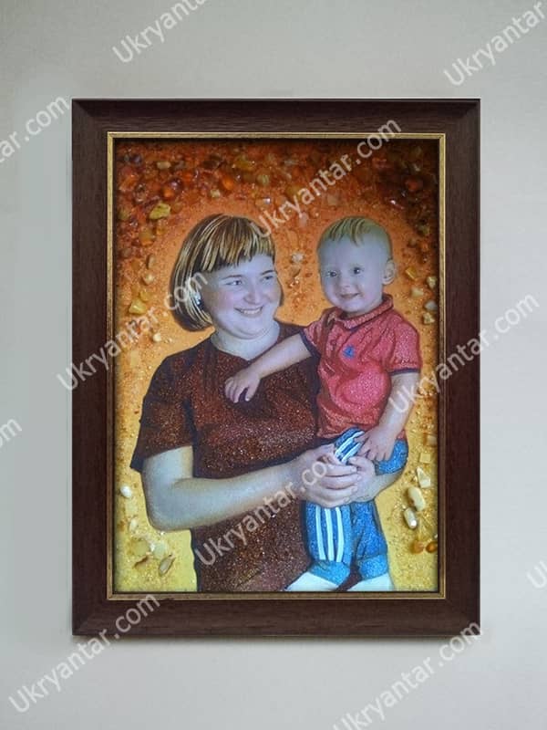 In the life of each and every, mum - is the most important and the native people, the relationship which in the first years of life are particularly important for children. Typically, monitoring of the mother and the baby brings a lot of emotion that does not pass by such a portraitist sincere models. Portrait of amber "Baby with mom", shows the outside world in a natural standing posture pretty rosy mom, holding in her arms her smiling son. Painting like impregnated maternal love and children's genuine joy that penetrate the atmosphere of the room a homey feel and a hint of true happiness.