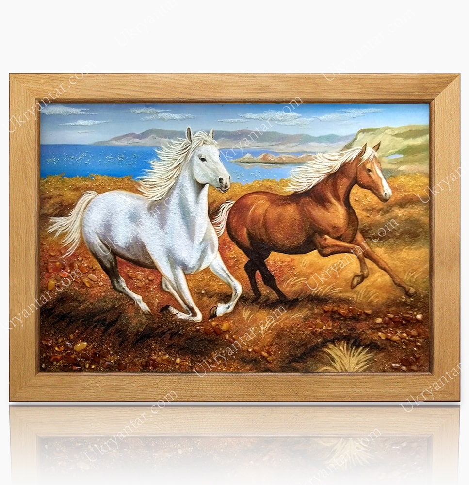 Бурштинова картина «Два коні»