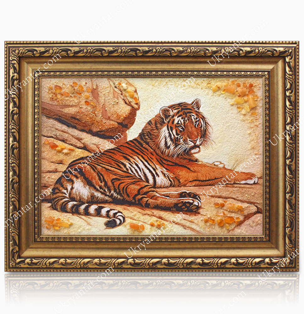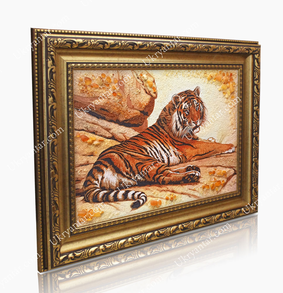 Панно «Тигр» з бурштину