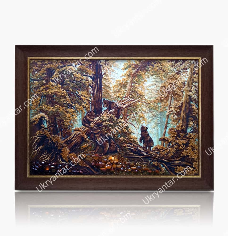 Картина з бурштину «Ранок в сосновому лісі»